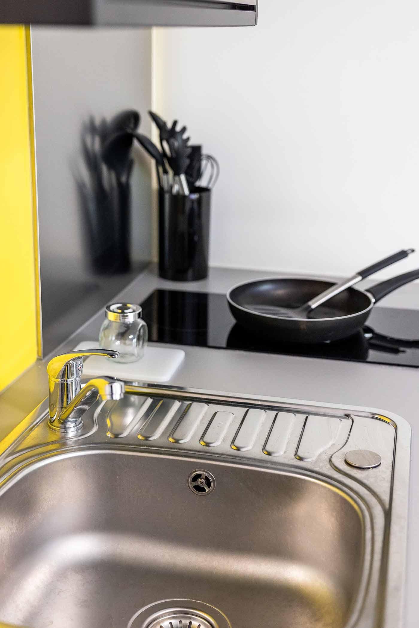 Your room will come with its own large comfortable bed, study desk and chair and large wardrobe. The modern and vibrant décor features handy storage solutions and easy-to-operate appliances for you to enjoy including your very own hob, microwave and fridge.