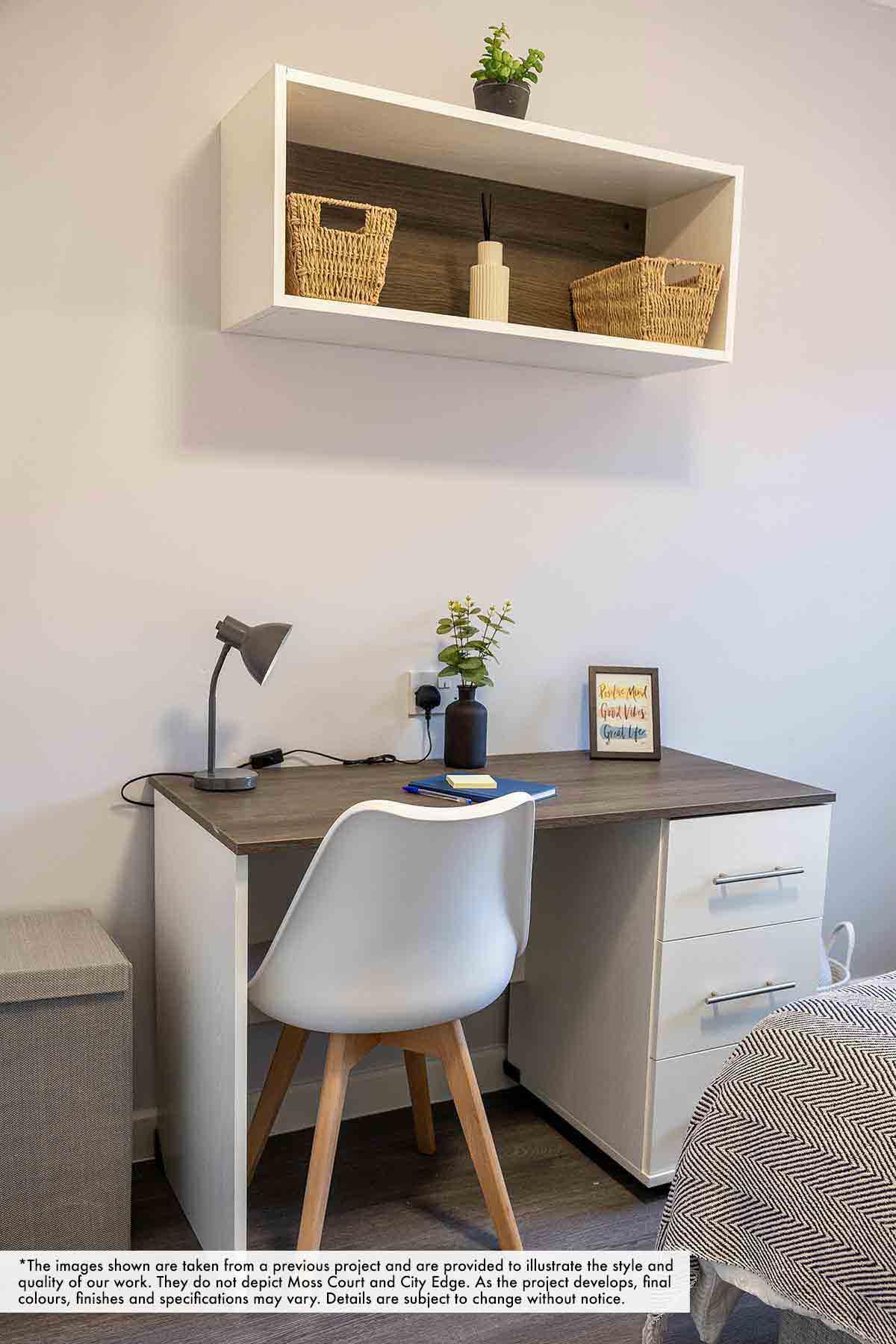 Each Gold Studio features a fully equipped kitchen with your own washer/dryer, together with a private bathroom, a comfortable double bed, and a dedicated study area designed to support both your academic and personal needs. With ample storage and wardrobe space, plus high-speed Wi-Fi, you’ll have everything required to live, study, and relax in style.